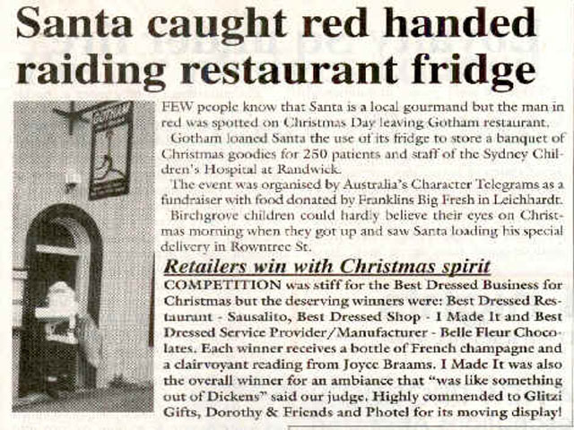 We are highly experienced in customised corporate Staff Christmas parties tailored to your needs and business to business Christmas present ‘thank you’ Santa deliveries for your valued clients. Then there are surprise Santa home Christmas visits for those very special people in your life. For preschool Christmas parties book a Santa to delight the children and students with Father Christmas who will sing Christmas carols and chat with them about their Christmas present wishes. They will be delighted to have their name read out by Santa Claus and your personal individually wrapped Christmas present presented to them along with a happy snap photo with Santa to treasure forever. You may have met one of our roaming Santas around town which have been booked for many years entertaining at Shopping centres, Christmas Markets, Hotels, Restaurants and the airport doing meets and greets at these Sydney community Christmas events.